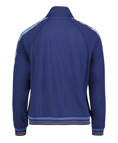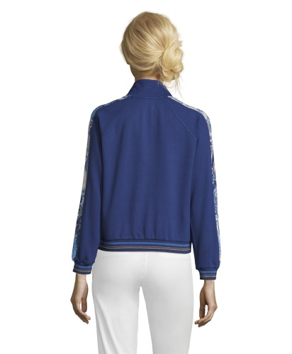 Блейзер в спортивном стиле выглядит очень модно и современно! Прямой покрой, воротник-стойка, застежка-молния, длинные рукава реглан. Трикотажная отделка манжет и низа изделия. Завершающая деталь дизайна - контрастные вставки вдоль рукавов. Материал из вискозной смеси приятен к телу и обеспечивает комфорт. Этот блейзер - прекрасный выбор для прогулки прохладным летним вечером.